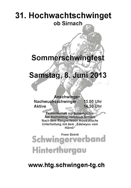 El / Dieses Jahr findet das Sommerschwingfest auf der Hochwacht als „Vorabendschwinget“ am Samstag, 8. Juni 2013 statt. Die Unterverbände aus dem Kant. Thurgau treten mit ihren besten Schwingern an.