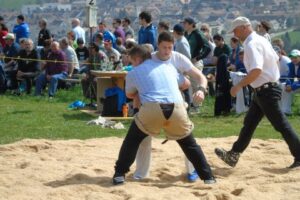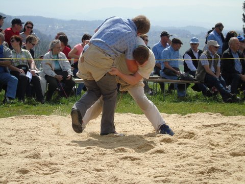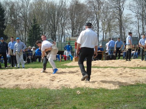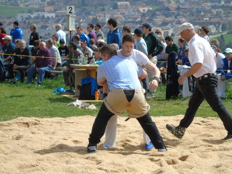 Einen schlechten Arbeitstag musste Marcel Hungerbühler, Amriswil einziehen. Nach einem verhaltenen Start gegen einen Kranzschwinger aus dem Gastgebenden Kanton, konnte er keinen positiven Gang gestalten. Dazu gesellte sich, dass der Amriswil den Platz zweimal als Verlierer verlassen musste, obwohl die Zuschauer gemein einen anderen Ausgang sahen. Eine Rückenprellung und einen empfindlichen Schlag an den linken Ellenbogen verhinderten eine weitaus bessere Rangierung als Rang 14b.