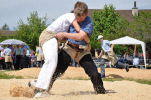 Die sechzehn Hinterthurgauer Aktivschwinger erhofften sich bestimmt etwas mehr, und so durfte am Abend nur der 19 Jährige Hinterthurgauer This Kolb, Affeltrangen vor die Ehrendamen treten. Sechs Schwinger konnten um den Kranz schwingen. Der letzte Gang, welcher sicher noch gewonnen werden musste, endete bei den meisten gestellt und so gelang es nur Kolb, dank guter Vorarbeit den Kranz in den Hinterthurgau zu bringen. Er startete am Morgen noch mit einer Niederlage gegen den Luzerner Teilverbandskranzer René Berger und konnte danach vier Gänge für sich entscheiden. Im letzten Gang stellte er den Wiler Andreas Niederer und platzierte sich am Schluss mit 56.75 Punkten auf Rang sieben. Um einen viertel Punkt dahinter verpasste Kilian Kolb, Affeltrangen seinen ersten Kranz. Der erst 16 Jährige Hinterthurgauer musste am morgen eine schnelle Niederlage einstecken, danach konnte er sich dreimal die Höchstnote zehn und zweimal die Note neun für einen gestellten Gang schreiben lassen und klassierte sich somit gleich hinter der Kranzauszeichnung. Urs Schäppi, Wiezikon und Pirmin Kolb, Affeltrangen verpassten den Kranz ebenfalls nur knapp, mit einem Sieg im letzten Gang hätten auch sie vor die Kranzjungfern treten dürfen. Zu der sehr guten Teamleistung, auf Rang zehn und elf trugen auch der junge Andrin Habegger, Tägerschen, Elias Kundert, Sirnach und Gregor Imhof, Balterswil bei.