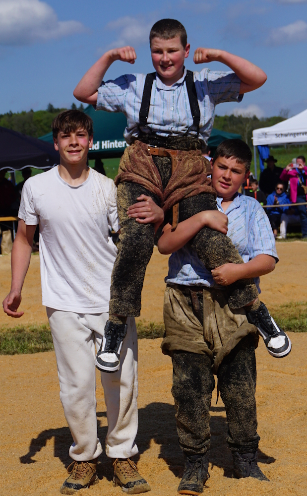 Da wir gerade über Superlativen sprechen. Der Zihlschlachter Joan Zingg (2017) gewann innerhalb von nur acht Tagen das nächste Schwingfest. Und nicht nur das – dies gelingt ihm sogar mit der maximalen Punktezahl von 60.00! Pure Dominanz. Joans Gegner im Schlussgang war sein Club-Kollege Beni Bischof (2017) aus Häggenschwil. Auch Beni verdiente sich diesen Schlussgang – genau wie Joan – mit fünf Siegen in Folge. Da die Schlussgänge der Nachwuchskategorien simultan durchgeführt wurden, kann sich der Verfasser dieses Textes nicht an genaue Details dieses Schlussganges erinnern. Fakt ist, das der Gang nicht lange dauerte und Joan die Oberhand behielt. Beni beendete das Fest auf dem hervorragenden Platz 2a. Auf dem gleichen Rang reihe sich der nächste Zihlschlachter, in Person von Julian Brühlmann (2017) ein. Auch er gewann sensationell fünf seiner Gänge und musste sich nur dem Festsieger geschlagen geben. Nils Bühler (2017) aus Muolen konnte vier Gänge gewinnen und einen weiteren stellen. Dies ergab in der Endabrechnung den tollen Rang 5. Die Formkurve des Steinachers Michael Schmid (2017) zeigt ebenfalls nach oben. Mit vier gewonnenen Gängen klassierte er sich ebenfalls im Rang 5. Livio Gafner (2017) aus Amriswil verbrachte mit zwei Siegen und drei Punkteteilungen viel Zeit auf dem Sägemehl. Der gute Rang 9 war der verdiente Lohn für diese Ausdauer. Die Protagonisten dieses Jahrgangs sind ein Versprechen für die Zukunft. Die technische Reife dieser jungen Schwinger ist beeindruckend. Weiter so Jungs!