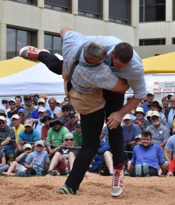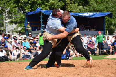 Samuel Giger, Ottoberg startet sehr gut in den Tag. Mit einem Sieg über Nick Alpiger, Seon und gestärktem Selbstvertrauen folgen weitere Erfolge über Patrik Räbmatter, Uerkheim, Joel Wicki, Sörenberg, Michael Ledermann, Mamishaus und Marcel Kropf, Mümliswil. Mit diesem sehr starken Notenblatt und 1.25 Punkten Vorsprung wartet der Einheimische Adrian Odermatt, Liesberg im Schlussgang auf Giger. Nach einer anfänglichen Schrecksekunde und Gigers sehr starken Brück und einem sehr attraktivem Gang, kann Samuel nach 9.10 Minuten mit einem Hüfter den Gang für sich entscheiden und gewinnt mit stolzen zwei Punkten Vorsprung das Fest.