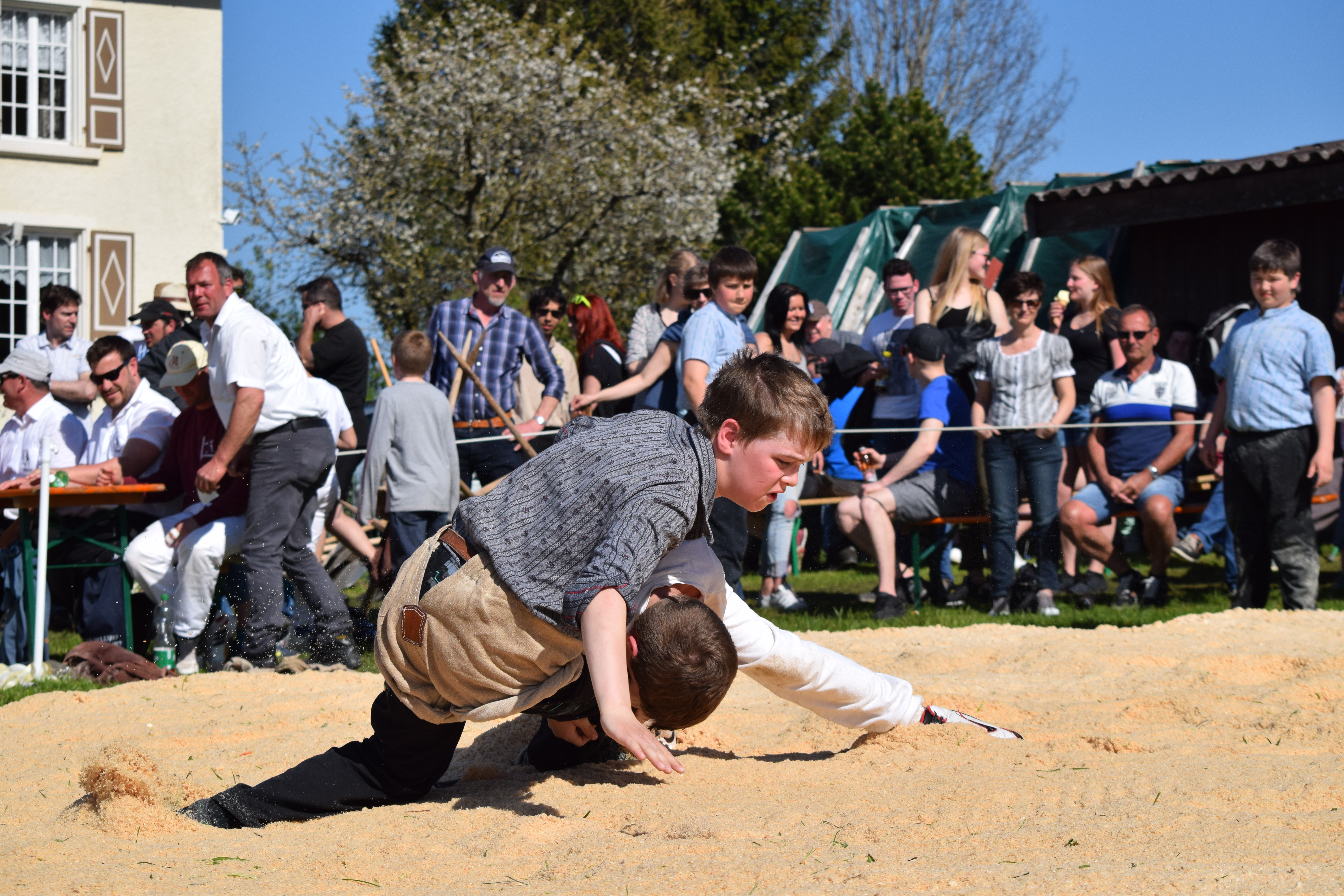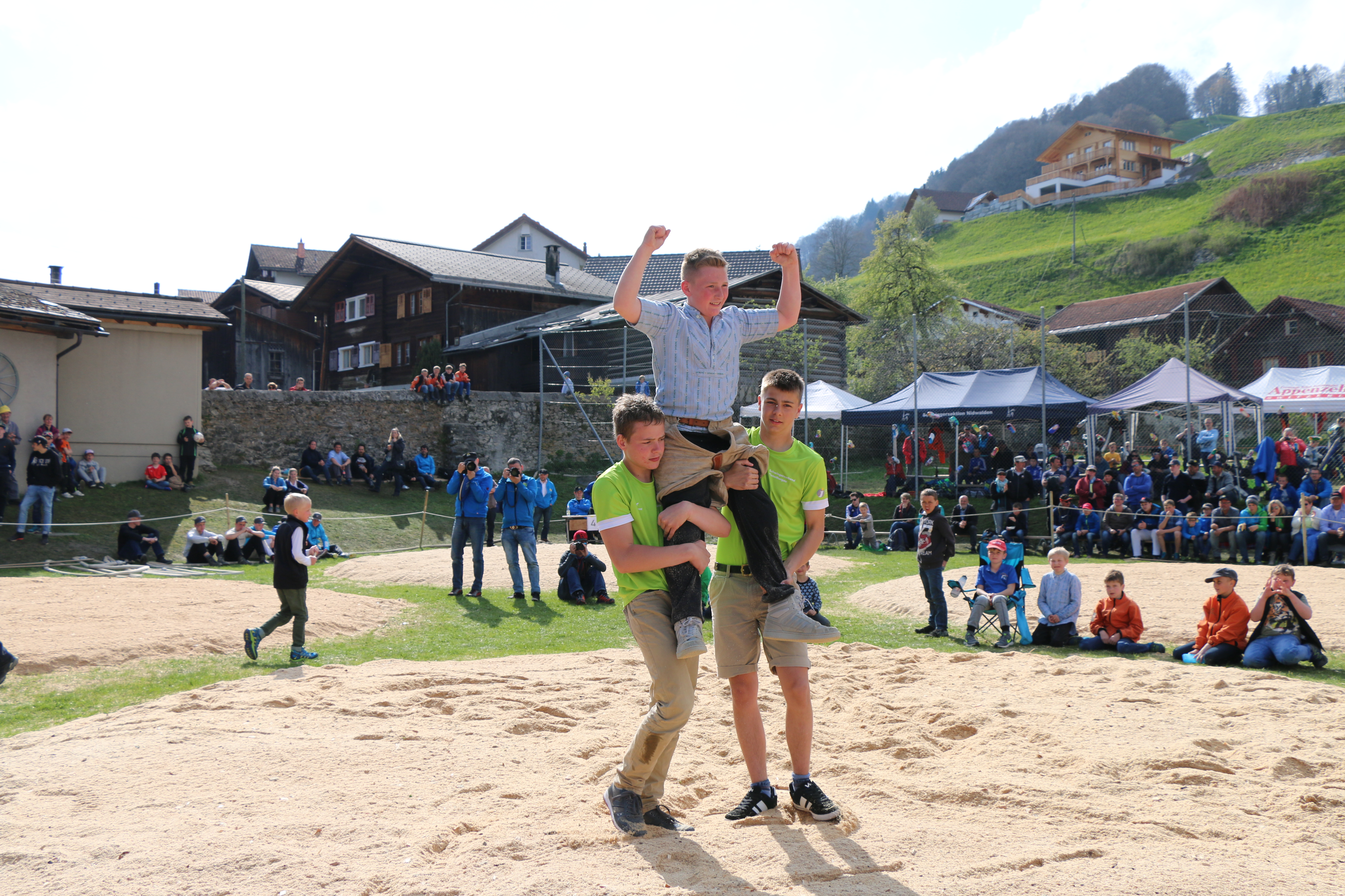 WeiterlesenAnzahl Nachwuchsschwinger: 112 Zuschauer: 700 Schlussgang JG 01-02; Lars Hugelshofer, Schönholzerswilen gewinnt gegen Aron Kieser, Märstetten mit Griff in Kniekehle nach einem Armhebel nach 35 Sek. Schlussgang JG 03-04; Thomas Keller, Homburg gewinnt gegen Luis Olbrecht, Oberhofen mit Kurz nach 3 Sek. Schlussgang JG 05-06; Dieser Schlussgang gewinnt Andrin Habegger, Tägerschen gegen seinen Klubkollegen Kilian Kolb, Affeltrangen mit Kurz und Nachdrücken nach 1.10 Min. Schlussgang JG 07-08; Yannik Meier, Salenstein gegen den einheimischen Yanick Siegenthaler aus