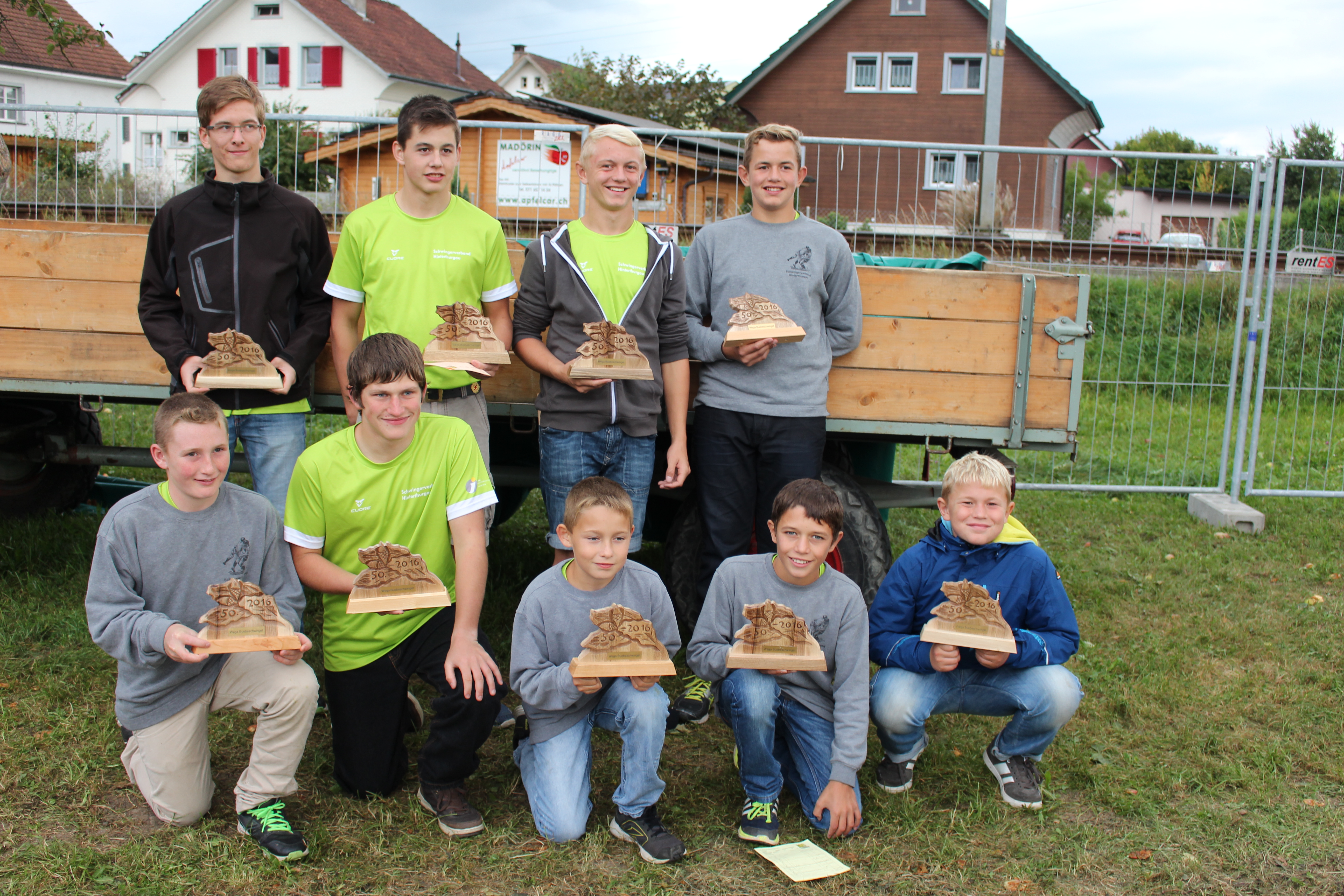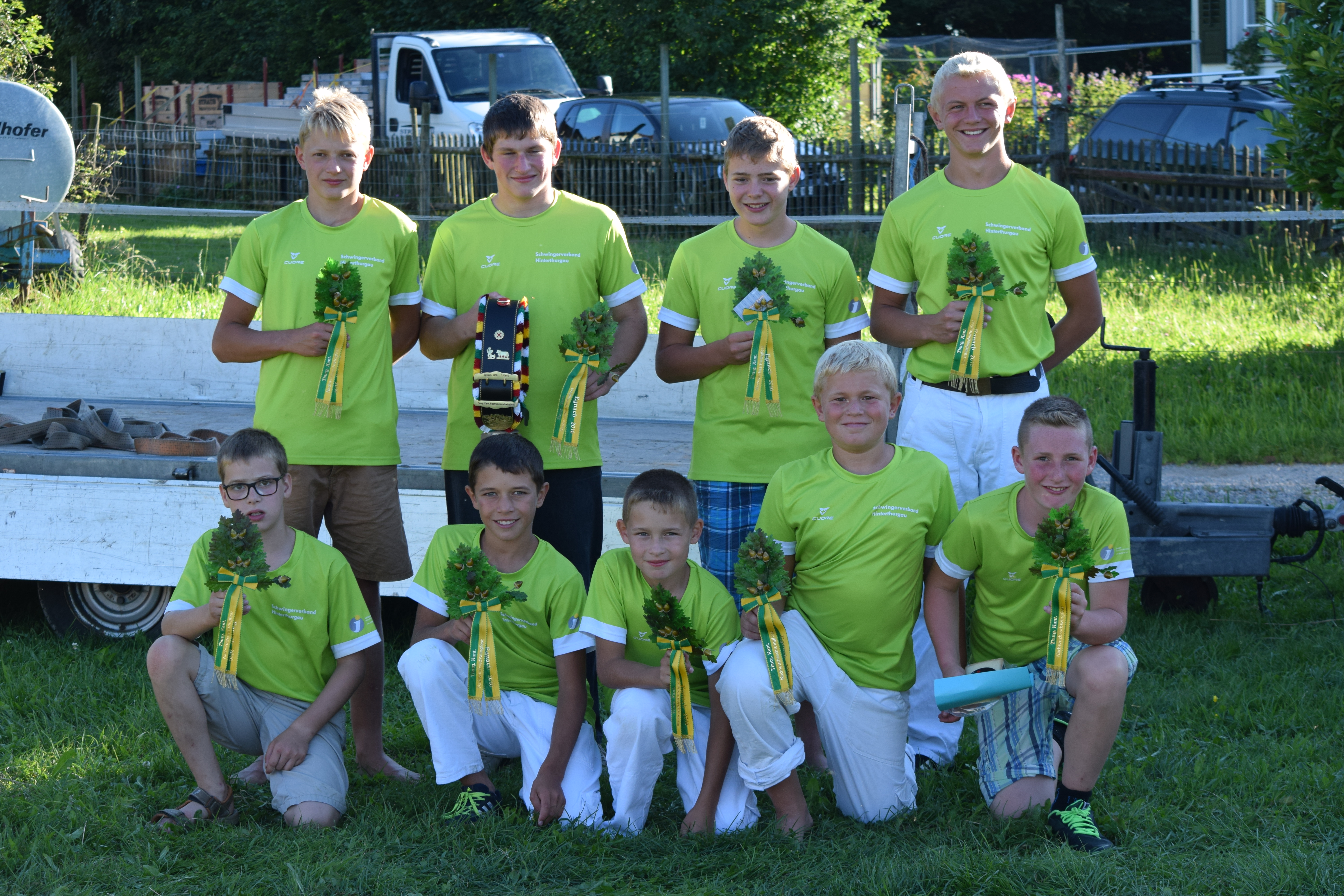 Bei unsicherem, aber mehrheitlich trockenem Wetter traten in Andwil SG 281 Jungschwinger davon zehn Hinterthurgauer am Buebeschwinget Stadtverband St.Gallen an. Bei der ältesten Kategorie 02/03 gelang es Silvan Koller, Busswil mit fünf gewonnen und einem verlorenen Gang auf Rang 2, sowie This Kolb, Affeltrangen mit vier gewonnenen, einem gestellten und einem verlorenen Gang auf Rang 6b zur Auszeichnung. Bei der Kategorie 04/05 durfte Elias Kundert, Sirnach mit 57.25 Punkten nach vier gewonnen einem gestellten und