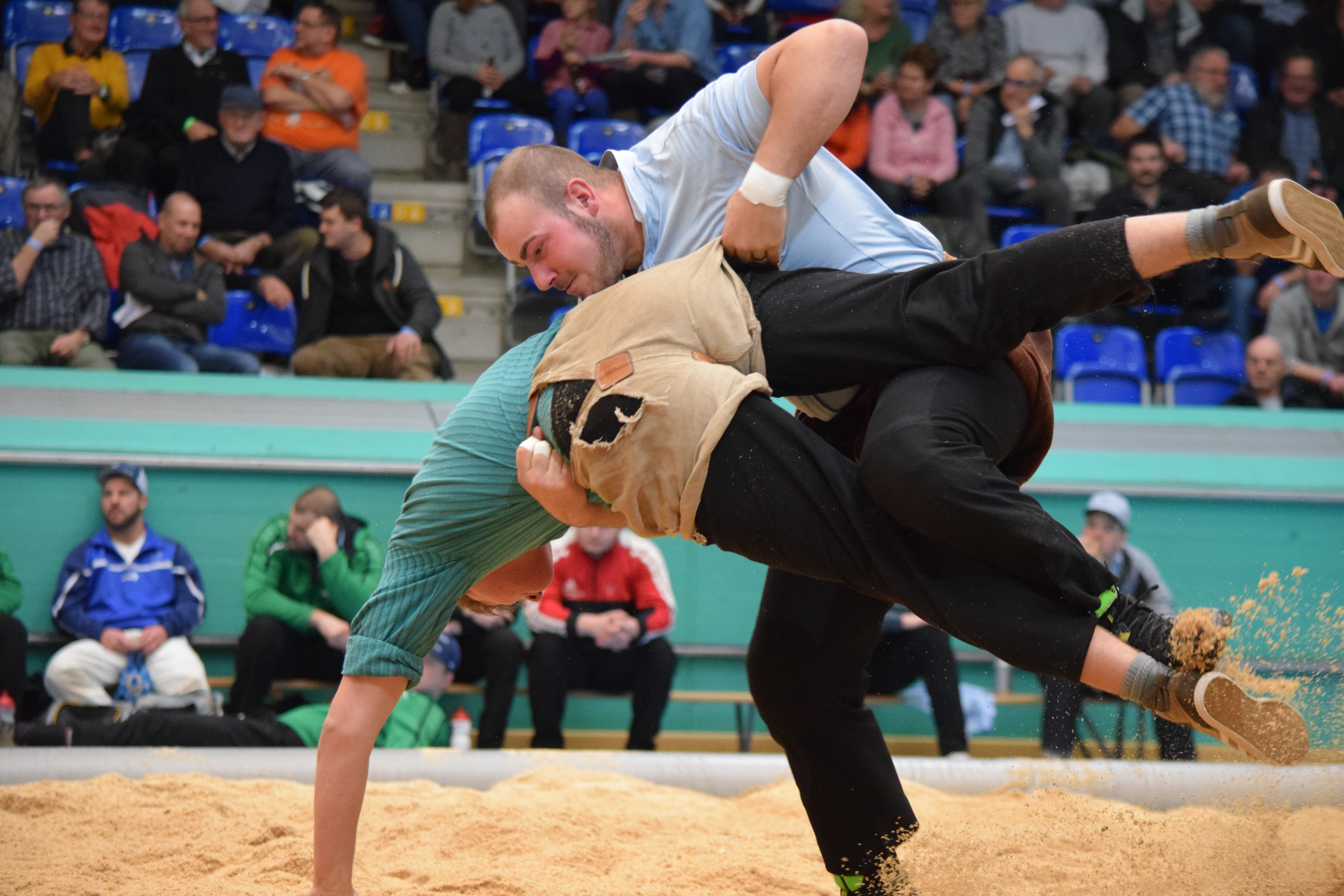 WeiterlesenEl/Armon Orlik (Maienfeld) gewinnt gegen Samuel Giger (Ottoberg) nach 4:49 Minuten mit Kurz. Die 130 angetretenen Schwinger am traditionellen Berchtoldschwinget in der Saalsporthalle, Zürich-Wiedikon vom 2. Jan. 2019 zeigten den 2200 Zuschauern interessante Schwingerarbeit. Samuel Giger, Ottoberg begann den Tag mit einem Sieg gegen Pirmin Reichmuth aus Cham. Mit Tobias Riget, Schänis, stellte Giger. Die Gänge drei und vier gewann er Souverän. Ebenfalls konnte er dem Glarner Roger Rychen, Mollis das Sägemehl vom Rücken abwischen.