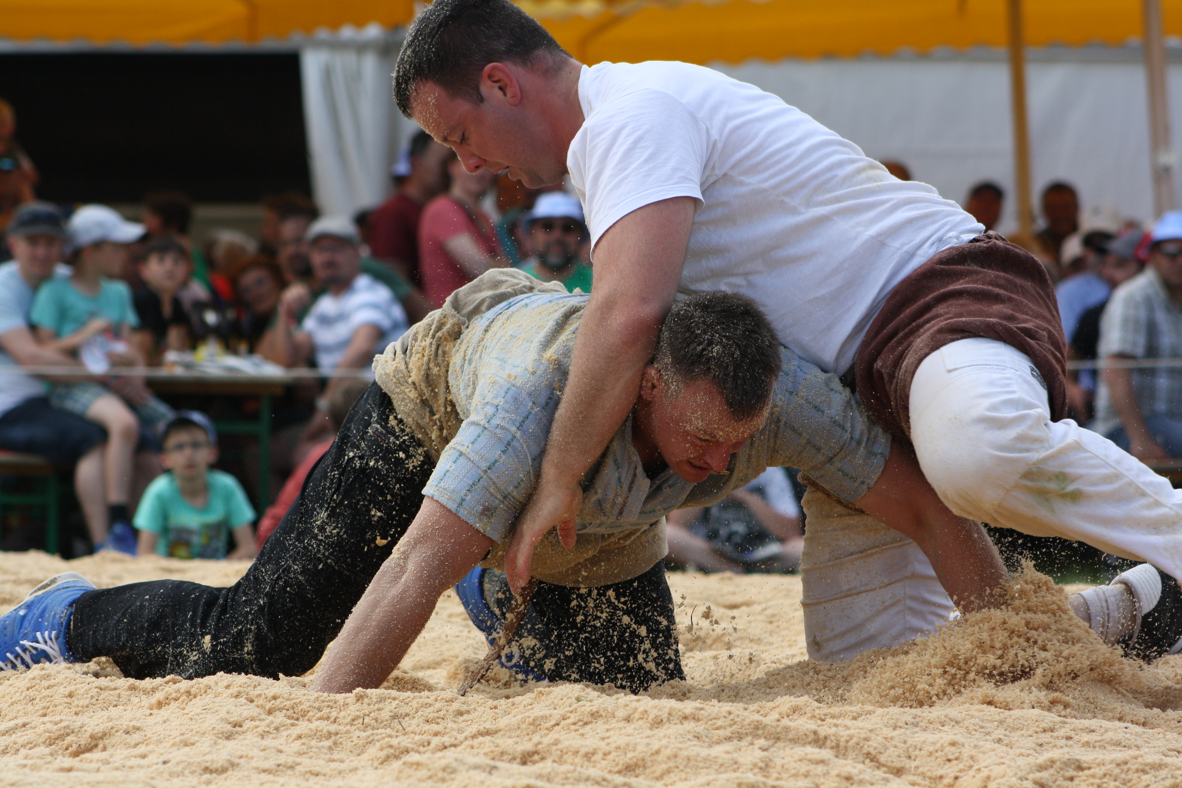 WeiterlesenVor 2200 Zuschauer gewann Armon Orlik, Maienfeld den Schlussgang am Berchtoldschwingen in der Saalsporthalle Zürich gegen den Thurgauer Samuel Giger, Ottenberg. Der Hinterthurgauer Urs Schäppi, Wiezikon verpasste die Auszeichnung um einen viertel Punkt. Nach einem harzigen Start mit zwei verlorenen Gängen, konnte er sich danach drei gewonnene Gänge schreiben lassen. Davon gewann er zwei mit einer platten zehn. Im letzten Gang bekam er es mit dem Eidgenossen Patrik Räbmatter zu tun, dieser war jedoch zu