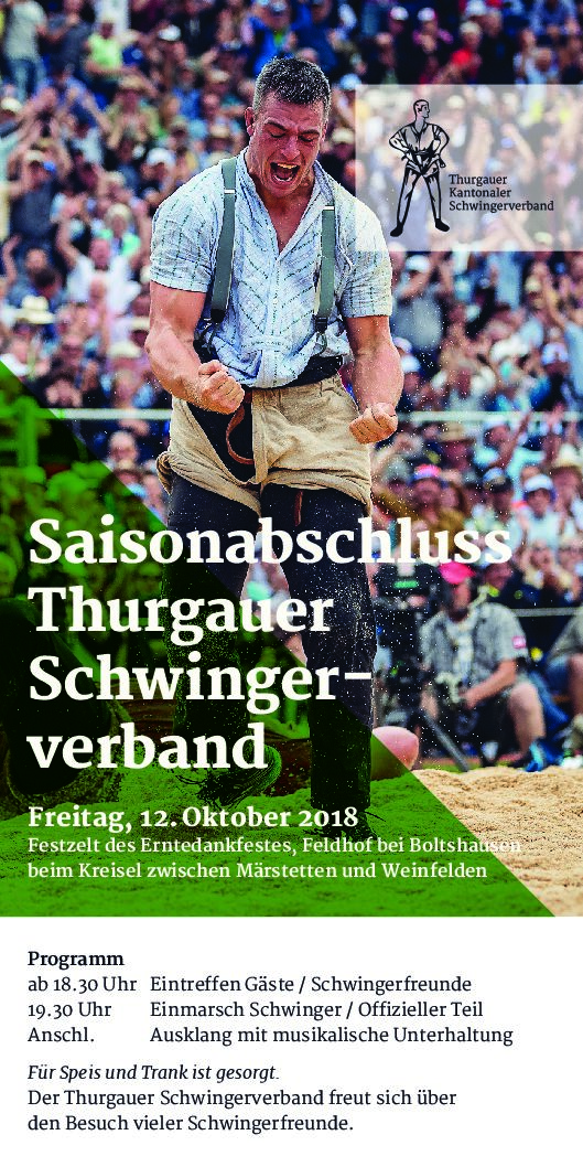WeiterlesenDie Tagung beginnt um 19.00 Uhr mit dem Apero. Die Versammlung findet am Freitag, 19. Oktober 2018 um 20.00 Uhr im Rest. Freihof Sulgen statt. Thurgauer Schwingerveteranen