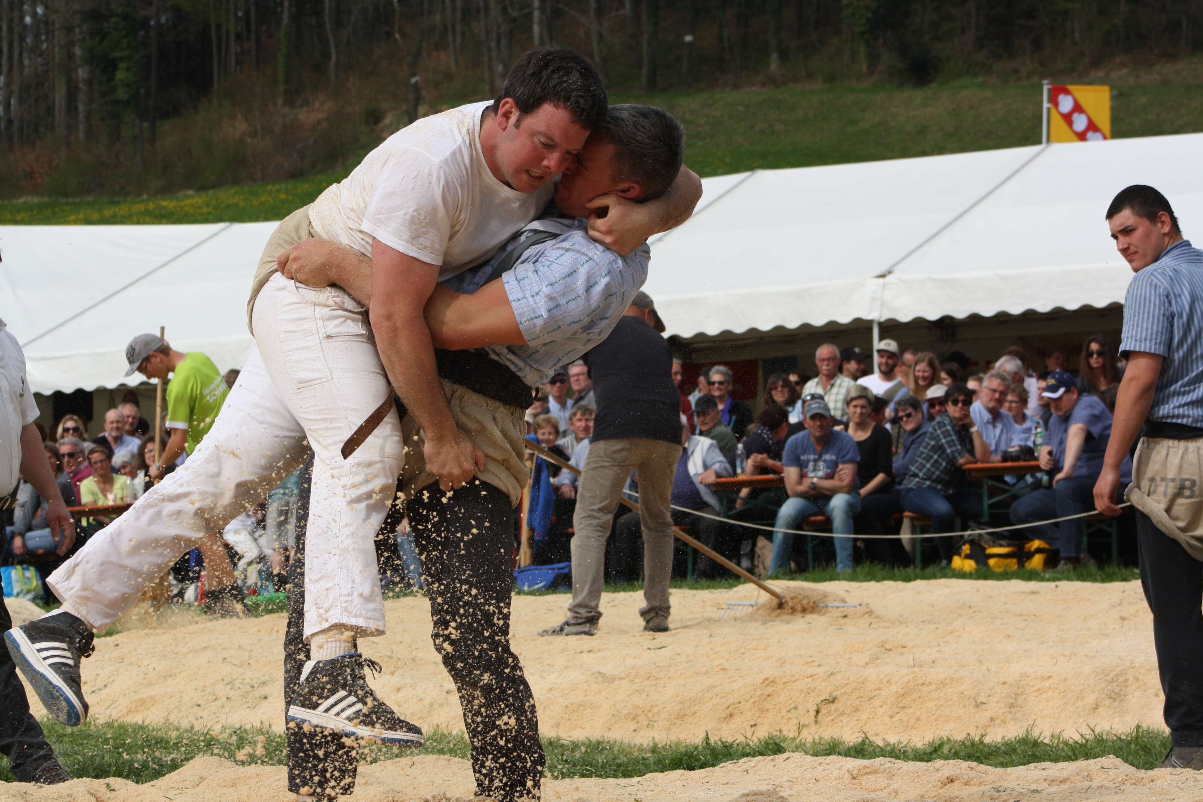 WeiterlesenMit Hannes Bühler und Thomas Vogel begannen zwei vielversprechende Athleten ihre Freiluftsaison beim Schaffhauser Frühjahrsschwinget in Oberhallau. Nach anfänglicher Niederlage von Bühler gegen Dominik Schmid kämpfte er sich eindrücklich mit zweimal der Note 10 ins Wettkampfgeschehen zurück. Dank einem weiteren Sieg und einem Gestellten sicherte sich Bühler eine begehrte Auszeichnung auf dem Rang 7d. Vogel wiederum startete mit zwei Siegen, wobei er gegen den Kranzschwinger Adrian Morger eine glatte 10 verbuchen konnte. Leider konnte er
