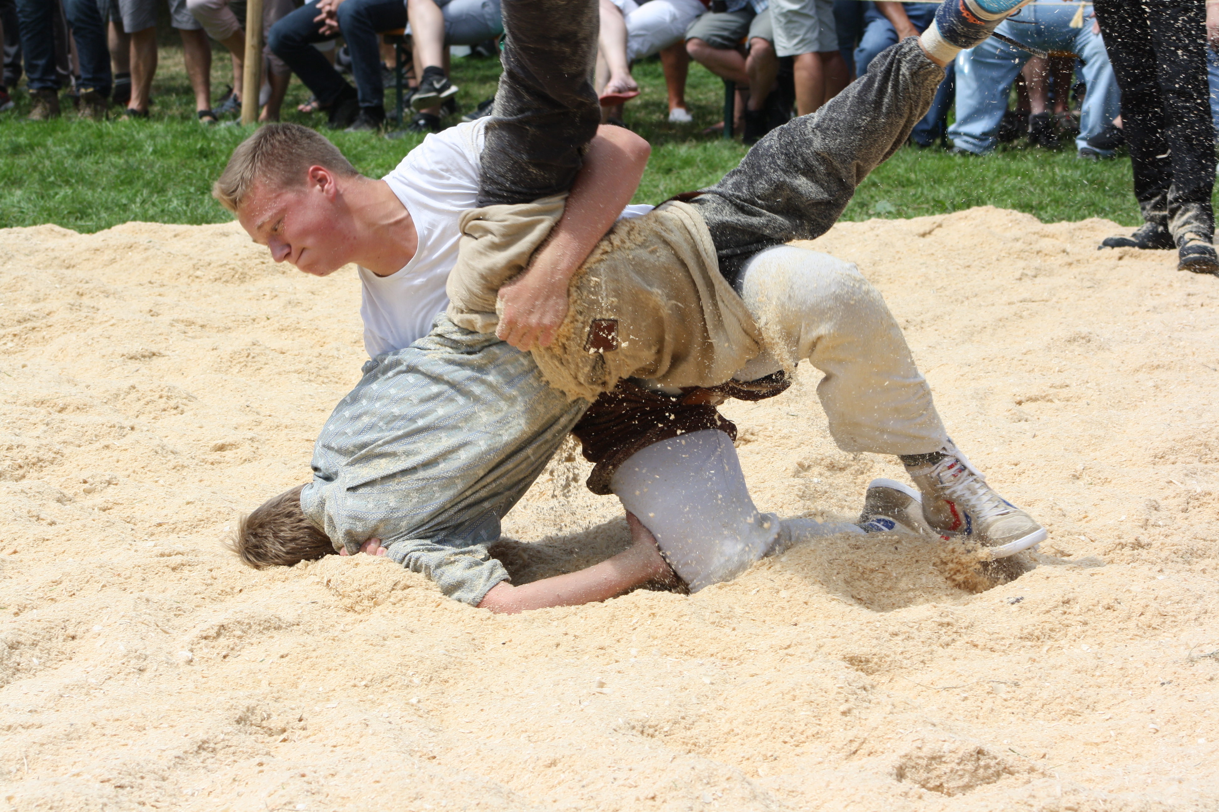 WeiterlesenAm Samstag, 21.April fand in Bichwil das Uzwiler Buebeschwinget statt. Bei schon hochsommerlichen Temperaturen traten 231 Jungschwinger in 4 Kategorien gegeneinander an. 650 Zuschauer verfolgten spannende, kräfteraubende Zweikämpfe. Auch die zehn angereisten Hinterthurgauer Jungs kämpften beachtlich und lieferten gute Resultate. In der ältesten Kategorie teilte sich This Kolb, Affeltrangen im ersten Gang die Punktzahl mit David Lieberherr aus Ennetbühl. Alle andern fünf Gänge konnte er für sich entscheiden. Somit rangierte er sich zum Schluss auf