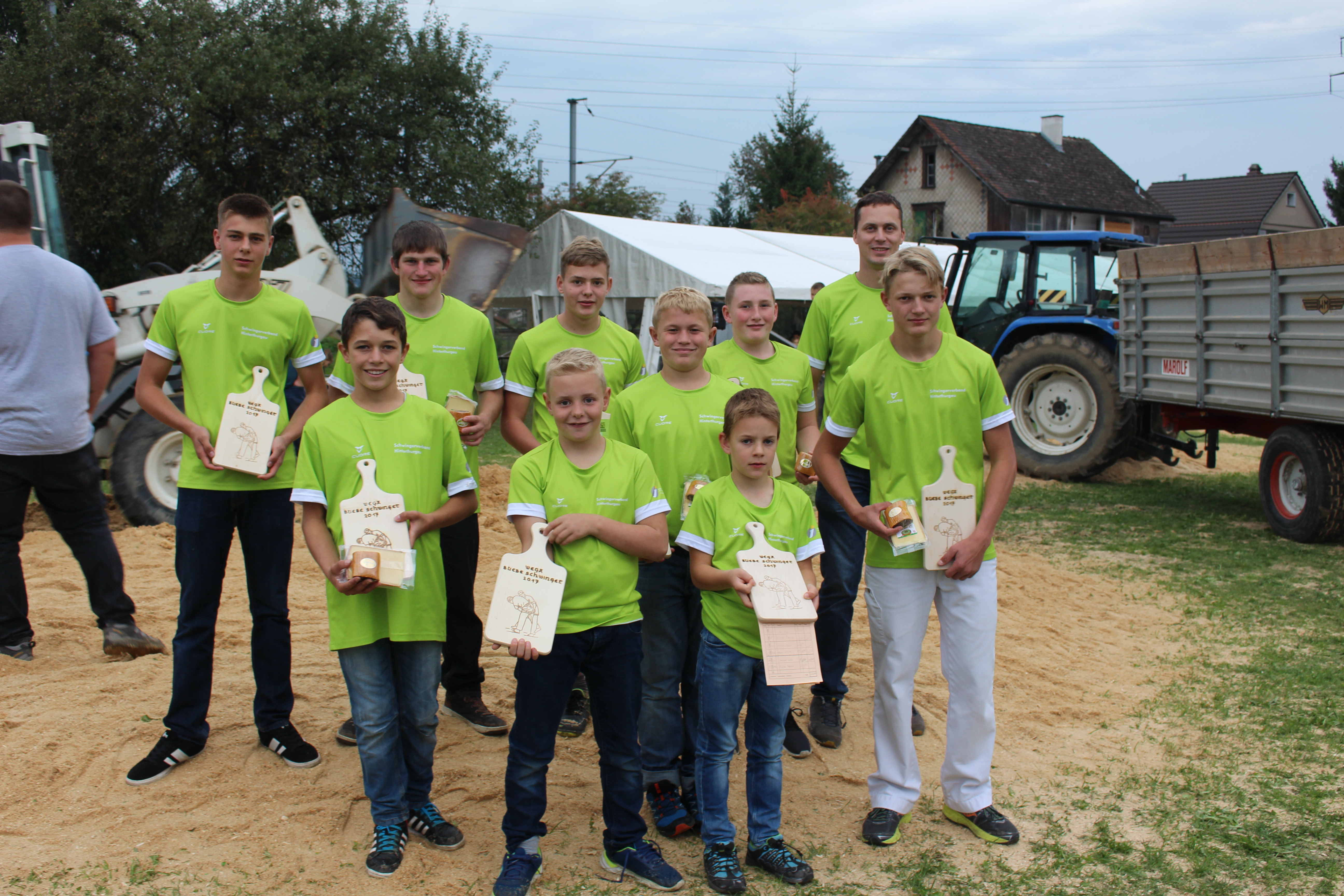 WeiterlesenIn Weinfelden fand am 30.September das Wega Buebeschwinget statt. Zum Saisonende traten 378 Knaben aus der gesamten Nordostschweiz und einige Luzerner Gäste an. Vom Schwingclub Hinterthurgau kämpften 15 Jungs um Spitzenplätze. Neun von Ihnen durften eine Auszeichnung mit nach Hause nehmen. Bei den Jüngsten Jg. 2008/09 belegt Gian Rieder aus Dussnang mit 55.50 Punkten Rang 12b. In der Kategorie Jg. 2006/07 rangiert sich Lukas Hollenstein aus Bichelsee mit 56.00 Punkten im Rang 10e. Im Jahrgang