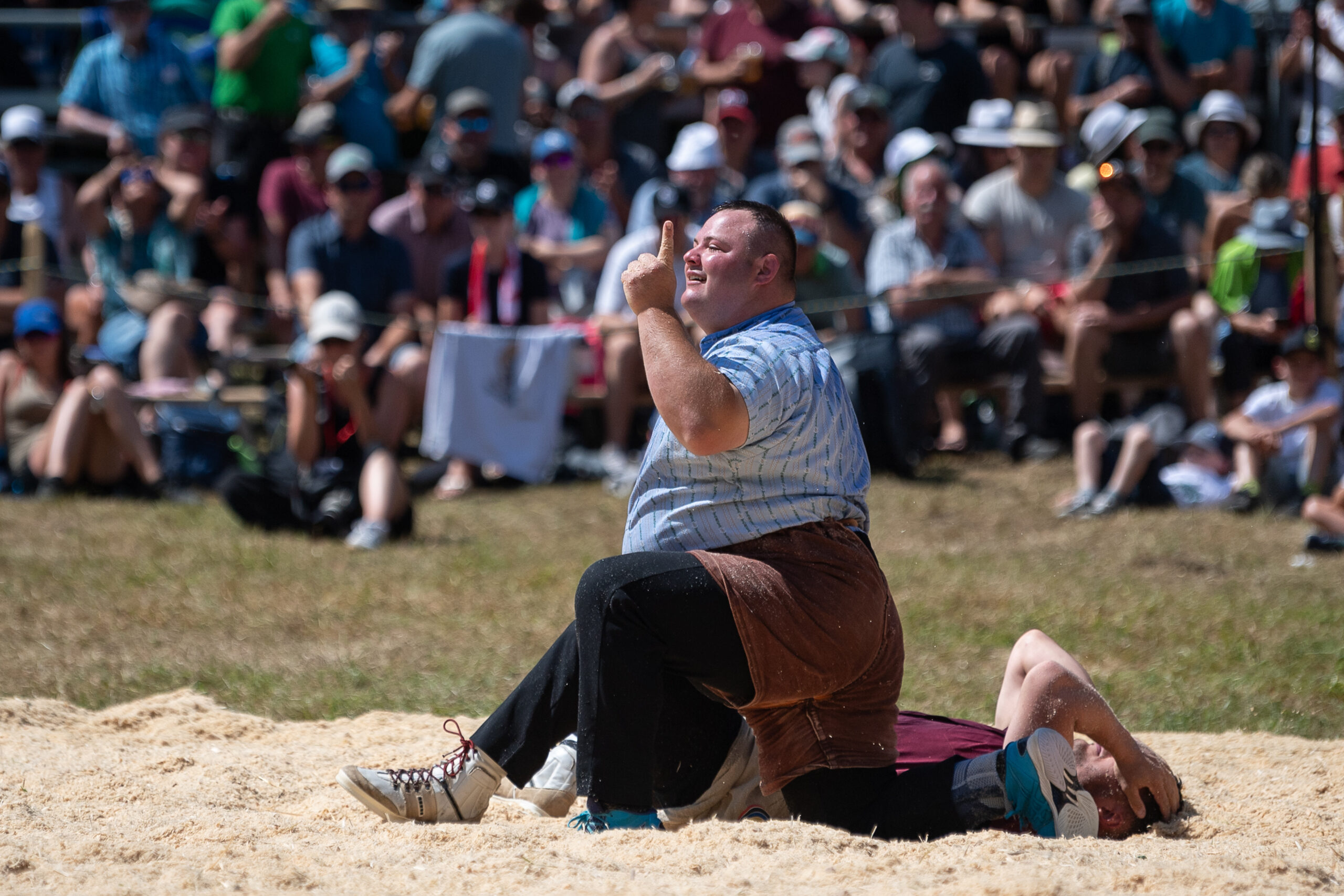 Weiterlesenpn/ Jedes Wochenende nichts neues. Bei garstigem Wetter starteten 18 Thurgauer am Appenzeller Kantonalen in Hundwil. Angeführt von Mario Schneider, der seinen ersten Gang gegen Damian Ott stellte, konnte er danach seine Gänge allesamt gewinnen, so qualifizierte er sich souverän für den Schlussgang. Mario konnte den Schlussgang gegen den einheimischen Martin Herrsche nach knapp 7 Minuten mit einem Kreuzgriff für sich entscheiden. Für Mario ist es nach dem Sieg auf der Schwägalp 2023 sein zweiter