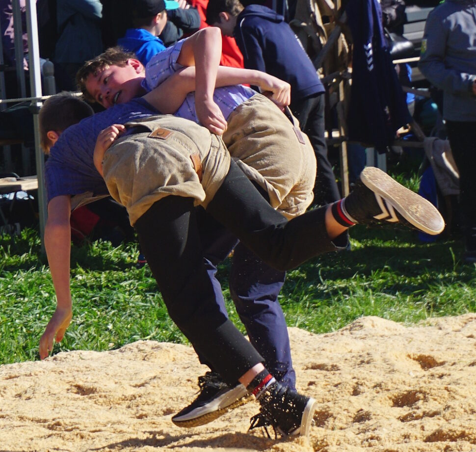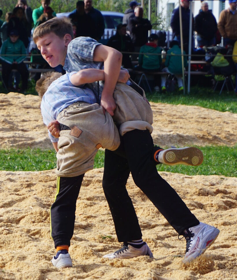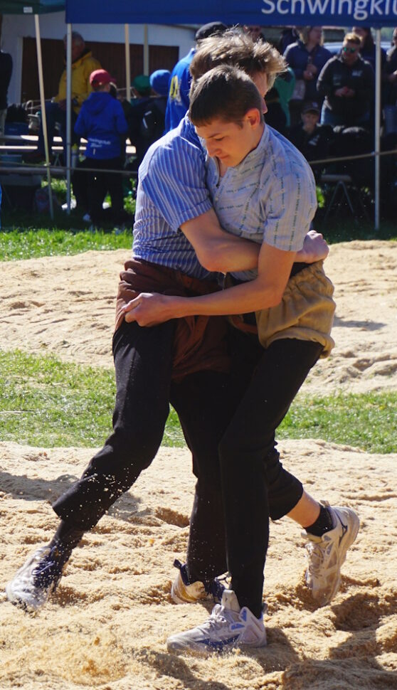 In der Kategorie der jüngsten Nachwuchsschwinger machte der Zihlschlachter Joan Zingg (2017) genau dort weiter, wo er Mitte Januar beim Hallenschwingfest in Frauenfeld aufgehört hatte – Gänge gewinnen. Mit fünf souveränen Siegen qualifizierte sich Joan mit einem Viertelpunkt Vorsprung für den Schlussgang. Dort kam es zum Duell mit dem Innerschweizer Gast Janik Schön (2017). Beide Schwinger griffen mit taktischem Feingefühl an und hatten die Chance auf den Sieg. Joan brachte den Gang über die Zeit und gewann das Fest auf Rang 1a. Durch den gestellten Schlussgang verhalf Joans Gegner seinem Clubkameraden Julian Weber (2017) zum Co-Sieg auf Rang 1b. Ein tolle Leistung Joan, herzliche Gratulation!