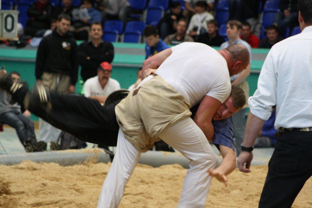 Weniger optimal hat der Tag für Stefan Burkhalter, Homburg begonnen. Mit Thorsten Betschar und Erich Fankhauser stellte Burkhalter und gegen Stefan Arnold verlor er nach kurzer Kampfdauer. Wie üblich rollte Stefan Burkhalter das Feld von hinten auf, mit der höchst Note gewann er gegen Remo Boss, Marco Fankhauser und Beat Vogel, diesen durfte er das Sägemehl abwischen und erreichte mit 56 Pkt. den Rang 8. Tobias Krähenbühl, Matzingen bekam es gleich mit drei Teilverbandskranzer und einem Eidgenossen zu tun. Drei Siege, zwei Niederlagen und ein gestellter Gang brachten ihm ebenfalls den Rang 8.